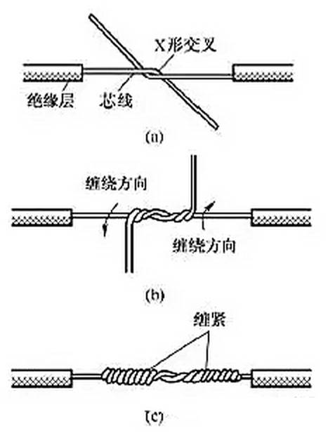 (1)單股銅導(dǎo)線的直接連接。小截面單股銅導(dǎo)線連接方法如圖1所示,先將兩導(dǎo)線的芯線線頭作X形交叉,再將它們相互纏繞2~3圈后扳直兩線頭,然后將每個線頭在另一芯線上緊貼密繞5~6圈后剪去多余線頭即可。2xn拖鏈電纜-聚氨酯卷筒電纜-高柔性坦克鏈電纜廠家
