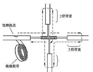 對導(dǎo)線的十字分支接頭進行絕緣處理時,包纏方向如圖22所示,走一個十字形的來回,使每根導(dǎo)線上都包纏兩層絕緣膠帶,每根導(dǎo)線也都應(yīng)包纏到完好絕緣層的兩倍膠帶寬度處。2xn拖鏈電纜-聚氨酯卷筒電纜-高柔性坦克鏈電纜廠家