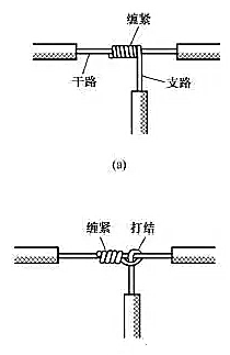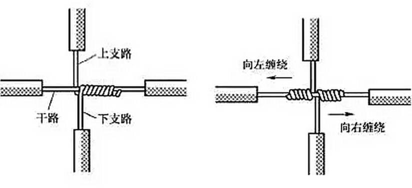 單股銅導(dǎo)線的十字分支連接如圖5所示,將上下支路芯線的線頭緊密纏繞在干路芯線上5~8圈后剪去多余線頭即可??梢詫⑸舷轮沸揪€的線頭向一個方向纏繞[見圖5(a)],也可以向左右兩個方向纏繞[見圖 5(b)]。2xn拖鏈電纜-聚氨酯卷筒電纜-高柔性坦克鏈電纜廠家