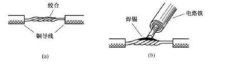 (1)銅導(dǎo)線接頭的錫焊。較細的銅導(dǎo)線接頭可用大功率(例如150W)電烙鐵進行焊接。焊接前應(yīng)先清除銅芯線接頭部位的氧化層和黏污物。為增加連接可靠性和機械強度,可將待連接的兩根芯線先行絞合,再涂上無酸助焊劑,用電烙鐵蘸焊錫進行焊接即可,如圖17所示。焊接中應(yīng)使焊錫充分熔融滲入導(dǎo)線接頭縫隙中,焊接完成的接點應(yīng)牢固光滑。2xn拖鏈電纜-聚氨酯卷筒電纜-高柔性坦克鏈電纜廠家