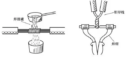 氣焊是指利用氣焊槍的高溫火焰,將鋁芯線的連接點加熱,使待連接的鋁芯線相互熔融連接。氣焊前應(yīng)將待連接的鋁芯線絞合,或用鋁絲或鐵絲綁扎固定,如圖19所示。2xn拖鏈電纜-聚氨酯卷筒電纜-高柔性坦克鏈電纜廠家